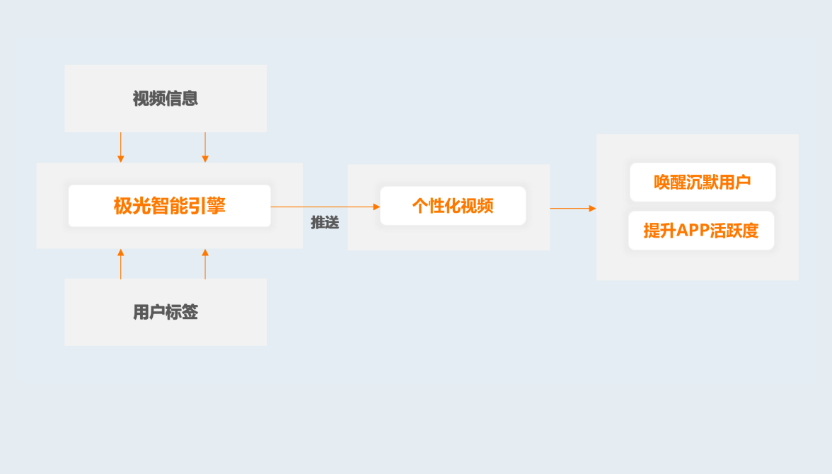 提供开放的内容库,在推送的消息里加入视频元素,解决推送消息类型单一的问题,帮APP提升留存及用户使用时长